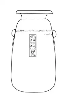 The vase has a quadrilingual inscription, in Old Persian, Babylonian, and Elamite cuneiforms, and in Egyptian hieroglyphs.[1] All three inscriptions have the same meaning "Xerxes : The Great King". The Old Persian cuneiform inscription in particular, comes first in the series of languages, and reads: