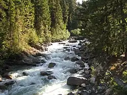 Cayoosh Creek flows generally northeast from sources in the eponymous Cayoosh Range north of Cayoosh Pass to join the Seton River at Lillooet, British Columbia.[1] In local parlance, the 4 kilometre length of the Seton River to its confluence with the Fraser River at the town of Lillooet is referred to as Cayoosh Creek, as is indicated by a Department of Highways sign on the BC Highway 99 bridge crossing it just before the Bridge of the Twenty-Three Camels over the Fraser, which lies immediately upstream of the river's mouth.