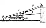 Clarke's machine would use a hydraulic ram to insert cylinders of ammonal explosive about 6 feet (1.8 m) underground.[28] After detonation, the machine would advance into the crater it had just created and repeat the process.[28] The machine would be protected by 6 inches (150 mm) of armoured plate at the front to protect it from its own explosions and similarly at the top and rear as a defence against enemy fire.[28] In one record, Clarke mentions "I envisaged a machine that would by hydraulic means more or less row itself through the ground."[28] The machine's trench would be about 6 by 4 feet (1.8 by 1.2 m).[28][lower-alpha 3]