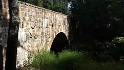 The Davies Bridge carries Red Bluff Drive across Cedar Creek, just north of Arkansas Highway 154 in Petit Jean State Park, Arkansas. It is a single-span closed-spandrel masonry arch structure, with an arch 20 feet (6.1 m) long and 10 feet (3.0 m) high. It is built out of mortared ashlar fieldstone laid in courses, with some stones left rusticated and protruding from the sides. The bridge was built in 1934 by a crew of the Civilian Conservation Corps that was developing the park's facilities.[2]
