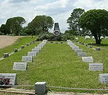 In the early years of World War II, Nazi Germany occupied the Netherlands.[6] Between 1942 and 1944, the United States permitted 500 displaced Dutch aviators to train at Jackson Army Airbase, which became known as the Royal Netherlands Military Flying School.[7] During those years, more than two dozen Dutchmen were killed in local training accidents. In recognition of their service, the City of Jackson donated a plot of ground within Cedar Lawn Cemetery to the Netherlands for burial of their dead.[8]