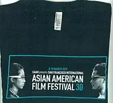 Commemorative T-shirt made for the 30th anniversary of the San Francisco International Asian American Film Festival in 2012. The image shows actors Tiana Alexandra and Mark Dacascos