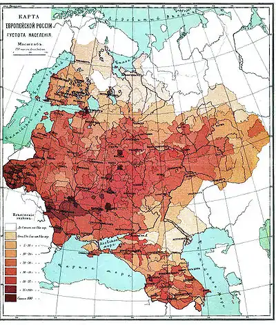 Population density map of the European part of the Russian Empire