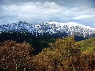The Central Balkan National Park (Bulgarian: Национален парк Централен Балкан) is a national park in the heart of Bulgaria, nestled in the central and higher portions of the Balkan Mountains. Its altitude varies from 550 metres (1,800 ft) near the town of Karlovo to 2,376 metres (7,795 ft) at Botev Peak, the highest summit in the range. It was established on 31 October 1991.