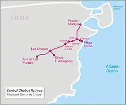 The Central Chubut Railway (in Spanish: Ferrocarril Central del Chubut) was a British-owned company that built and operated a 1,000 mm (3 ft 3+38 in) metre gauge railway line in the Argentine province of Chubut in the Patagonia region at the end of the 19th. century.