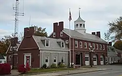 The Central Fire Station is a historic fire station at 26 Quincy Avenue in Quincy, Massachusetts. The 2+1⁄2-story brick Colonial Revival structure was built in 1938 to a design by local architect George Robinson (who also designed a number of Quincy's other period firehouses). The building is evocative of (if less ornate than) Philadelphia's Independence Hall, with paired side chimneys on its main block and on its three wings, and its cupola.[2]