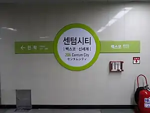 Centum City Station (Korean: 센텀시티역) is a station on the Busan Metro Line 2 in U-dong, Haeundae District, Busan, South Korea.