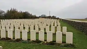 The Cerisy-Gailly Military Cemetery is a military cemetery located in the Somme region of France commemorating British and Commonwealth soldiers who fought in World War I. The cemetery contains mainly those who died on the front line near the village of Cerisy between February 1917 and March 1918 and during the Allied recapture of the village in August 1918.[1]