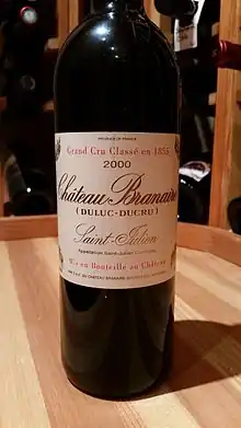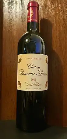 Château Branaire is a winery in the Saint-Julien appellation of the Bordeaux region of France. Château Branaire is also the name of the main red wine produced by this property and which was classified as one of the ten 'Fourth Growths' (Quatrièmes Crus) in the Bordeaux Wine Official Classification of 1855.