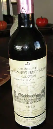 For many years considered the chief challenger to its historically more significant close neighbour Château Haut-Brion, La Mission Haut-Brion sold wines at high prices, but this was considered justified as they "produced some remarkable bottles".[4] The prolific Woltners ran operations at the neighbouring Château La Tour Haut-Brion for the widow Marie Coustau since her husband's death in 1923, who upon her death in 1933 left the chateau to the Woltner family in her will, and in 1931 the Woltners had acquired the nearby Château Laville Haut-Brion where they produced a dry white wine considered one of the best in Graves.[5]