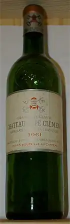 Planted in 1300, the estate is the oldest planted vineyard in the region, when it was presented to Bertrand de Goth upon his appointment as archbishop of Bordeaux, by his brother,[3] Berald.[4] It received its name from Bertrand's papal name, Clement V; on his election in 1306 he gave the estate to his successor as archbishop, Cardinal Arnaud de Canteloup.[2] Bertrand, who would later move the papacy to Avignon near Châteauneuf-du-Pape, planted this original vineyard with red wine grapes. White wine grapes were planted across the river near the town of Lormont.[5] The vineyard remained in the possession of archbishops of Bordeaux until the Revolution, when it was nationalised and sold as a bien national.[6]