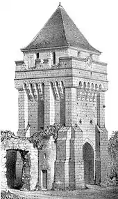 Château de Druyes is a medieval castle located in Druyes-les-Belles-Fontaines in Yonne, Bourgogne-Franche-Comté. It was built in the 12th century[1] by the Counts of Nevers, and remained in their possession until the 18th century. It was as much a noble residence as it was a fortified castle. It was a frequented dwelling place of Peter II of Courtenay, the Emperor of Constantinople in the 13th century, and his daughter Matilda, Countess of Nevers, Auxerre and Tonnerre.
