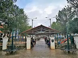Jiron Triunfo is the street which links the three principal plazas of the city. It is called by this name because the victorious Chachapoyans of the Higos Urco battle entered the city through here.[4] Chacapoyas' transitional location between the arid Cordillera Occidental and Cordillera Central and the rainy, rainforested Cordillera Oriental, allow it to receive a generally moderate annual precipitation amount without receiving the copiously excessive, tropical-rainforest-like precipitation amounts farther east in towns such as Moyobamba.