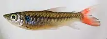 The genus name Chalceus comes from the Greek word "chalkos", which means "copper".[1][8] This in turn is from the original description of the first Chalceus species, the pinktail chalceus (C. macrolepidotus), wherein Georges Cuvier noted that its scales were coppery ("sometimes golden") when preserved in alcohol.[6][9]