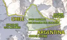 The Chaltén Mountain Range Natural Site (Spanish: Sitio Natural Cordillera del Chaltén) is a natural site part of the Bernardo O'Higgins National Park in the Magallanes and Chilean Antarctica Region, Chile. It is located between the boundary demarcated by the 1994 arbitration award and section B of the 1998 agreement between Argentina and Chile. It has an area of 768 hectares (1,900 acres).