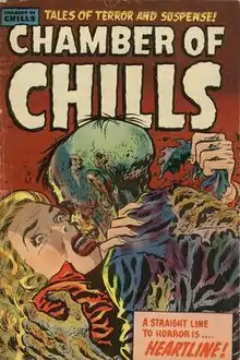 The first Chamber of Chills was a 10-cent horror anthology published bimonthly by Harvey Publications that ran 26 issues (cover-dated June 1951 - Dec. 1954).[1]