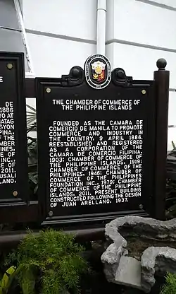 - ↑ "The Chamber of Commerce of the Philippine Islands, Historical Marker". Wikimedia Commons.