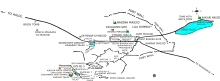 The Champaner-Pavagadh heritage site is spread over an area of more than 1,329 hectares (3,280 acres) with a buffer zone of 2,812 hectares (6,950 acres).[1] In addition to the Primary Heritage Zone of 983.27 hectares (2,429.7 acres), there are several other sites which include: Kabutarkhana, Maqbara, Maqbara Mandvi, Maqbara near Patidar Village, Malik Sandal Ni Vav, Hathikhana, Sindh Mata, Sikander Ka Reuza, Babakhan Ki Dargah, Nau Kuan Sat Vavdi, and Chandrakala Vav. The site is 50 kilometres (31 mi) east of Baroda and 42 miles (68 km) south of Godhra, whose history is recorded from the second century AD and which has many religious monuments of Gujarati Sultans (of Turkish descent), Rajputs, and Jains. It includes the Palace of Mahmud Begada, grandson of Ahmed Shah, who founded Ahmedabad City, Jama Masjid and other mosques.[6] The setting is undulating hillocks and plateaus. There are steep rock exposures formed by ancient volcanic eruptions and lava flows.