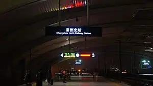 The Changzhou North railway station (Chinese: 常州北站) is a high-speed railway station in Changzhou, Jiangsu, China. It serves the Beijing–Shanghai high-speed railway. The station is a stop on Line 1 of the Changzhou Metro.