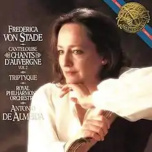 Frederica von Stade: Chants d'Auvergne, Vol. 2 & Triptyque is a 60-minute studio album containing thirteen of the thirty traditional Auvergnat songs collected and arranged by Joseph Canteloube, together with a song cycle of his own composition, performed by von Stade and the Royal Philharmonic Orchestra under the direction of Antonio de Almeida. It was released in 1986.[1] The same artists recorded Canteloube's seventeen other Auvergnat songs for the album's predecessor, Frederica von Stade: Chants d'Auvergne, Vol. 1, released in 1982.[1]
