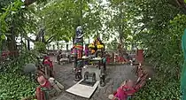 The Chao Mae Tuptim shrine (Thai: ศาลเจ้าแม่ทับทิม, RTGS: Thapthim, also known as Penis Shrine[1]) is a phallic shrine in Bangkok, Thailand, located behind the Mövenpick BDMS Wellness Resort Bangkok near the bank of the Khlong Saen Saep. It was created in the first quarter of the 20th century by Thai businessman Nai Lert (1872-1945), who found a spirit house floating in the klong and placed it on the bank of his property.[1] In Thailand, the phallus is considered to be a symbol of good luck and also a representative of fertility. The shrine is one of the best examples of intentional phallic architecture in the world. The site, which measures roughly 60 by 70 feet (18 m × 21 m), is now "crammed with carved" wooden penis statues, which are said to possess special cosmic powers and endow good fortune and fertility on anybody coming into contact with them.[1][2][3] The size of the penis statues, which number well over 100, is said to range "[from] the size of a cream doughnut to the size of a canoe";[4] some are huge, some are humorous and painted pink to closely resemble a human phallus.[5]