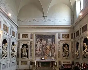 The Cappella di San Luca (Chapel of St Luke), also called dei Pittori is a chapel found in the cloisters of the convent of Santissima Annunziata in Florence, Italy. It was built to serve as the burial chapel for members of the Accademia del Disegno, and was donated by the Servites to the Academy in a document from 1565. It contains a collection of terracota statues from a number of prominent Florentine Mannerist sculptors.