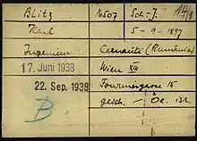 Registry card of Charles K. Bliss as a prisoner at Dachau Nazi Concentration Camp