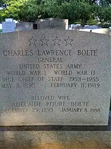 - ↑ Flint, Peter B. (February 13, 1989). "Gen. Charles Bolte, Ex-Army Vice Chief Of Staff, Dies at 93". The New York Times. New York, NY. p. D-13 – via TimesMachine.