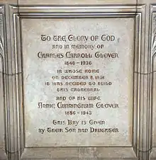 Plaque commemorating Glover in Washington National Cathedral