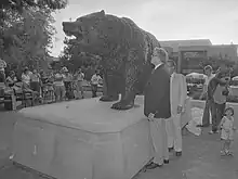 Young viewing the Bruin Bear in 1984