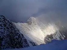 Striding Edge is a sharp arête providing an adventurous route up Helvellyn.