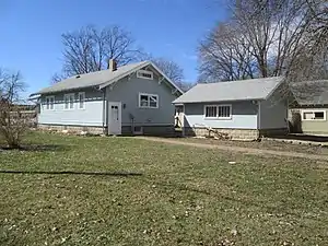 The Charles H. & Theresa H. McBride Bungalow is a historic building located in Shell Rock, Iowa, United States. While there are numerous examples American Craftsman residential architecture in town, there are few bungalows.[2] This is the only example in town of the bungalow subtype that features a rectangular plan with a gable front and a separate gable front porch. It is also rare for a bungalow, in general, to have a matching garage and even rarer to have a matching concrete block foundation as this house and garage.[2] The house's original location was on a flood plain and it was in danger of being torn down. It was acquired by the Shell Rock Community Historical Society and moved to its present location in 2006. It opened as the society's museum the following year.[3] The house and garage were listed together on the National Register of Historic Places in 2011.[1]