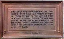 Charles Henry Hylton Stewart was Choral Scholar and Organist of St Catharine's College, Cambridge.[2] On James Pyne's departure, he acted as interim Organist of Chichester Cathedral and was formally appointed in May 1874.[3] The following year he left to take Holy Orders and was successively Minor Canon Precentor of Chester Cathedral (1877–89), Vicar of New Brighton (1889 - 1904),[4] and Rector of Bathwick, Bath (1904–16).
