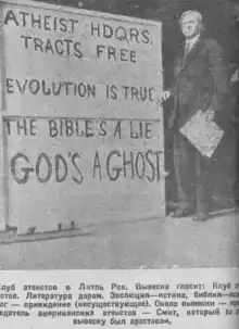 - ↑ "The Stanford Daily 18 October 1928 — Arkansas Denies Citizen's Rights To Atheist Head". stanforddailyarchive.com. 1928-10-18. Retrieved 2019-07-14.