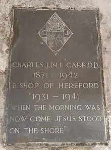 Charles Lisle Carr (26 September 1871 – 20 May 1942) was an Anglican clergyman who served as the second bishop of the restored see of Coventry in the modern era and the 107th Bishop of Hereford in a long line stretching back to the 7th century.
