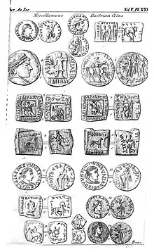 - Masson, Charles (1834). "Memoir on the ancient coins found at Beghram, in the Kohistan of Kabul". Journal of the Asiatic Society of Bengal. 3 (28): 153–175.