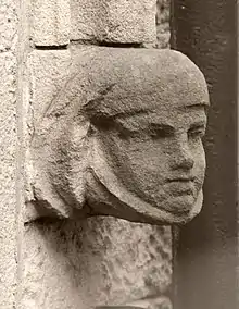 - ↑ This is similar to the pair of heads on the Scottish Widows building of 1876, therefore both are Charles' work