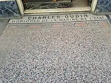 In 1809, Charles Oudin's address is given as number 52, rue de Richelieu, Palais du Tribunat[4]. Today, passers-by can still admire the mosaic in the pavement, announcing his name and title "Horloger de la Marine française" (Clockmaker to the French Navy).