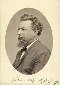 Charles Roscoe Savage (August 16, 1832 – February 4, 1909)[1] was a British-born landscape and portrait photographer most notable for his images of the American West. Savage converted to the Church of Jesus Christ of Latter-day Saints in his youth while living in England. He served a mission in Switzerland and eventually moved to the United States. In America he became interested in photography and began taking portraits for hire in the East. He traveled to Salt Lake City with his family and opened up his Art Bazar where he sold many of his photographs. Savage concentrated his photographic efforts primarily on family portraits, landscapes, and documentary views. He is best known for his 1869 photographs of the linking of the First transcontinental railroad at Promontory, Utah.