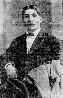 Charles Sieger was an American boxer who fought in the early 1900s. Fighting out of Hoboken, New Jersey, he was not particularly known for his fighting skills, but had tremendous strength and was able to withstand brutal punishment in the ring, which earned him the nickname "The Iron Man."[1] On November 14, 1902 he fought Joe Gans for the World Lightweight Championship in Baltimore, but lost by TKO in the 14th round. One month later on December 31 he fought Gans again in Boston, this time with the match ending in a pre-arranged draw.[2] In 1915, Sieger ran for mayor of Hoboken, but lost the election.[3]