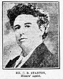 In February 1910, Stanton comfortably won a poll organised by the South Wales Miners' Federation to select a candidate for East Glamorganshire should Alfred Thomas retire (C. B. Stanton 6,297; Alfred Onions 3,214; Thomas Andrews 3,156; T. I. Mardy Jones 2,257).[3] In May 1910, Stanton was selected as the Labour candidate for the seat by a trade union delegates meeting[4] and, by July 1910, he was described as the "accepted Labour candidate for East Glamorgan".[5] However, Stanton was not universally popular among the leadership of the South Wales Miners Federation and the Miners' Federation of Great Britain, in part because of his militant position on industrial disputes. In November 1910, the executive committee of the M.F.G.B. at first refused to place Stanton's name on the Federation Parliamentary List for East Glamorgan, a decision which was reversed the following day.[6]