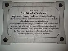 This article incorporates text from a publication now in the public domain: Chisholm, Hugh, ed. (1911). "Brunswick, Karl Wilhelm Ferdinand, Duke of". Encyclopædia Britannica. Vol. 4 (11th ed.). Cambridge University Press. p. 687.