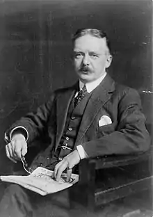 As a bibliophile with his own private collection, Wilson had a traditional approach to his librarianship role and concentrated on expanding the parliamentary library.[1] In 1918 the library received the bequest to the New Zealand government from Alexander Turnbull, who had constituted the largest private library in the country consisting of "55,000 volumes of books, pamphlets, periodicals and newspapers, and thousands of maps, paintings, drawings, prints and manuscripts". The government purchased Turnbull's home to house the Turnbull collection,[16] and put Wilson in charge of transferring the collection to the nation, and appointed him as supervisor for the further development of the collection. Wilson retired as a librarian in 1926 following an illness[1] and was succeeded in that role by Guy Scholefield.[17][18]
