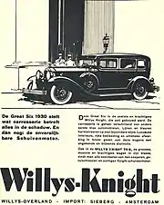 - Willys-Knight, part of the Willys company of John Willys, the second biggest car manufacturer in the United States at the time, next to the company of Henry Ford