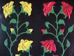 Almost any design imaginable appears on a Charlie boot—oil derricks, animals, names, initials, logos, scenes, just about everything was sketched and worked into the upper and, less frequently, the lower foot. Charlie's signature design, dating to the pair he built "on spec" that Ernest Tubb bought, was the inlaid rose. It began, as did all of his creations, with a detailed sketch. He liked to work from life, so he used actual roses to inspire his design, and Charlie's immense artistic skill allowed the design to bloom. Drawing an intricate rose the size of a quarter is one thing; figuring how to create it out of leather, in-lay it in proportion on the boot, was quite another. So difficult and unique was this design, Charlie kept the process secret for decades, until he passed along the secrets to Miller.[49]