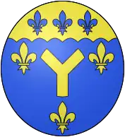 Charlotte's coat of arms: Azure a pairle couped between three fleurs-de-lys or, on a chief engrailed of the second three fleurs-de-lys of the first.[2]