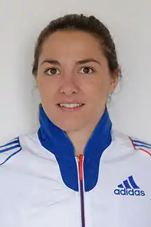 In the 2013–14 season Jean-Philippe Daurelle replaced Cyril Tahon as coach of the French women's sabre team, which Lembach described as “a breath of fresh air”.[4] Under his coaching Lembach won a silver medal in the Dakar World Cup and climbed on the podium in Chicago and Beijing.[4] In the European Championships held in her native Strasbourg, Lembach defeated teammate Cécilia Berder, but failed in the second round against No.1 seed Vassiliki Vougiouka and finished 13th.[4] In the team event, France defeated Germany, but were overcome in the semi-finals by reigning champions Russia. They prevailed over Poland to come away with a bronze medal. In the World Championships at Kazan, she fell in the second round again, this time at the hands of Małgorzata Kozaczuk of Poland.[5] In the team event France defeated Hungary, then created an upset by beating Russia in the quarter-finals and Italy in the semi-finals. Their winning streak was snapped in the final by the United States led by twice-Olympic champion Mariel Zagunis and France came away with a silver medal.[6]