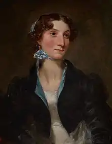 Little is known of her early life or origins owing to her telling various conflicting stories about herself, with William Oxberry recounting that he had heard five different versions.[3] According to one version she was born in Chichester in 1789 (according to Mardyn in about 1795) as Charlotte Ingram of Irish parents.[4] According to another version she was born in Ireland as Charlotte Eldred and moved to Chichester when young.[3] One of three daughters, she had little education and was unable to write her name fully until after her marriage and becoming an actress. Her writing was to be poor for the rest of her life, her face being her fortune.[4]