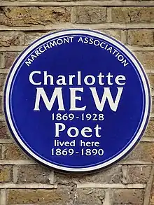 - ↑ Julia Copus (19 January 2018), A new blue plaque: rediscovering Charlotte Mew by Julia Copus, Faber & Faber