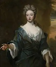 The dowager countess was buried on 12 July 1731, alongside her first husband, at St Mary Abbots, Kensington.[6] A portrait of her by Herman van der Myn, dating from around 1726, is held by the National Trust at Chirk Castle.[7]